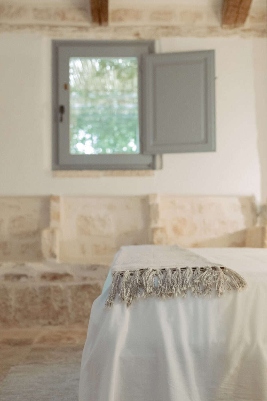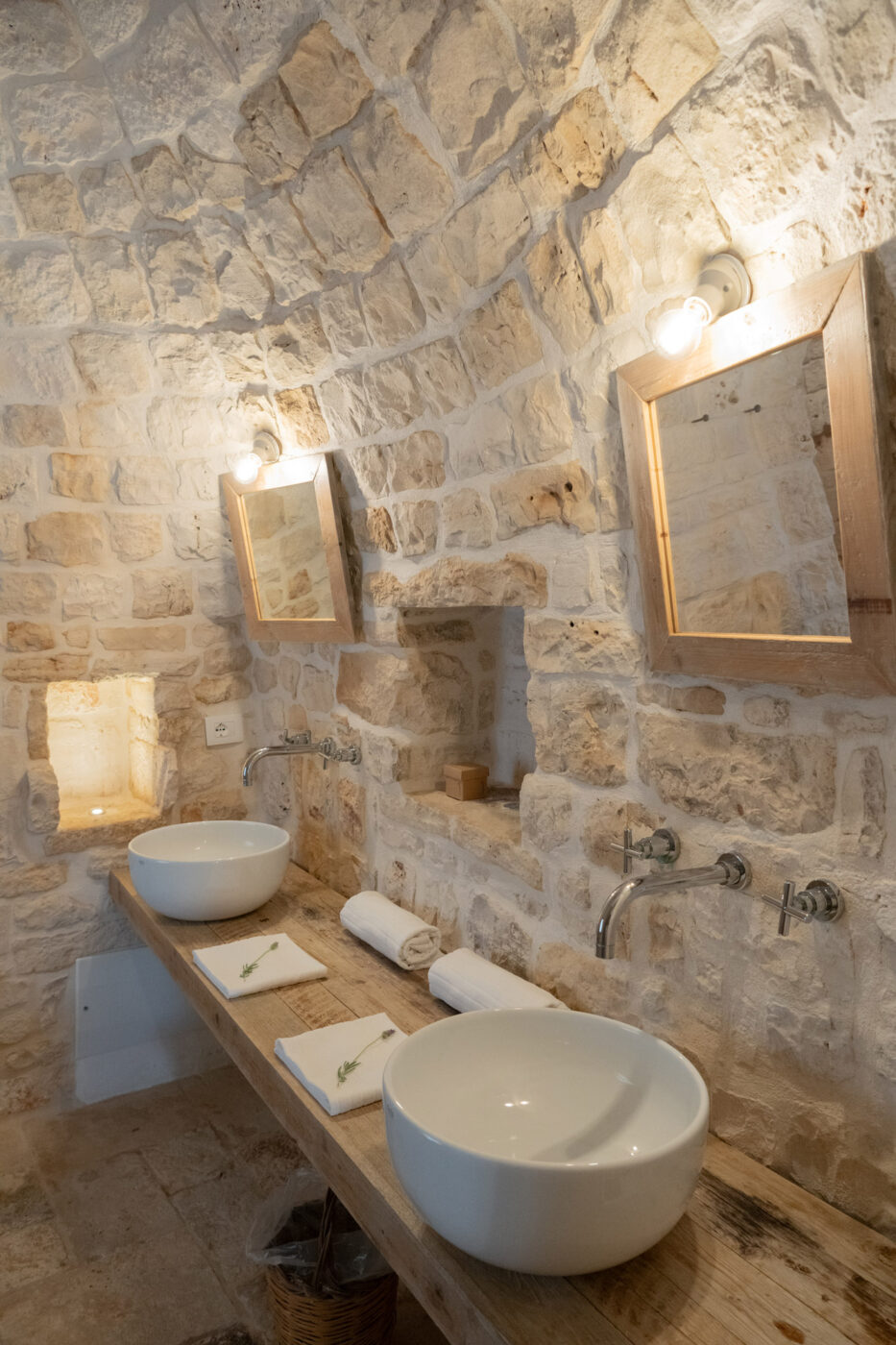 Le camere di Nina nascono da trulli storici e ambienti in pietra, con proporzioni autentiche e materia viva, dove l’ospitalità è fatta di spazio, luce e misura. Ogni ambiente ha una geometria propria: la pietra protegge, il silenzio accompagna, il tempo rallenta. Gli spazi sono raccolti e intimi, con privacy naturale e comfort discreto — letti ampi, climatizzazione, bagni essenziali e patio privato dove previsto — perché a Nina il comfort non si dichiara: si percepisce.